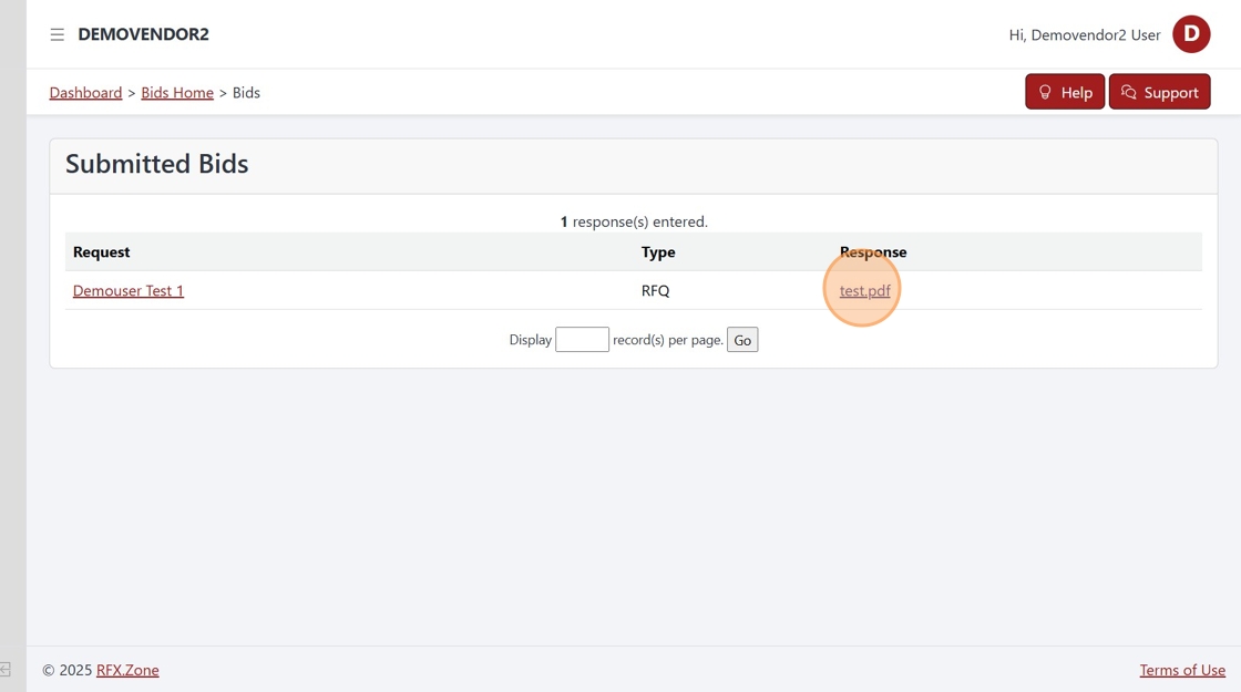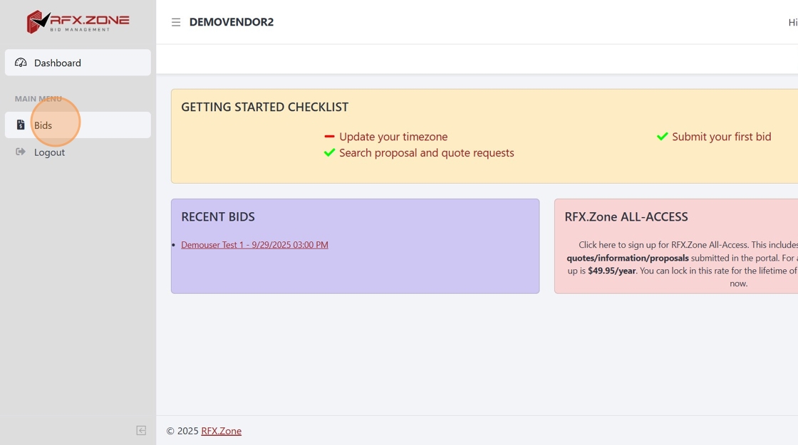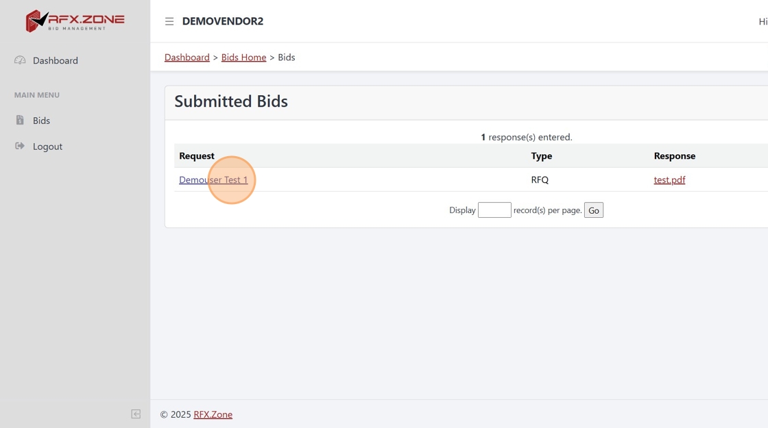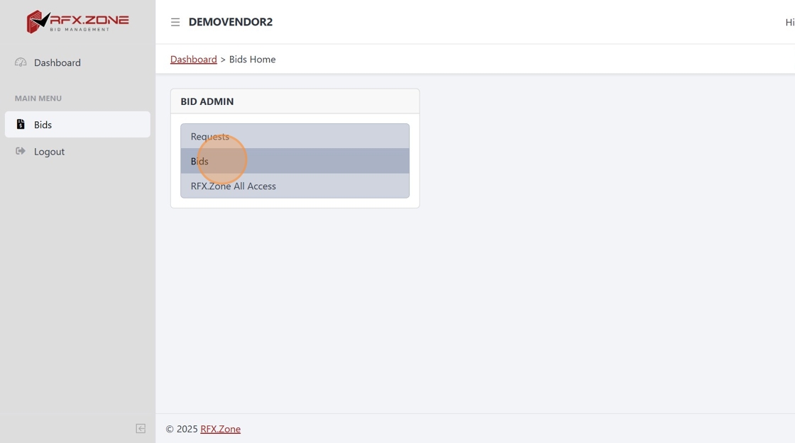 2. To see all of the responses you have submitted, click "Bids" on the main menu.
