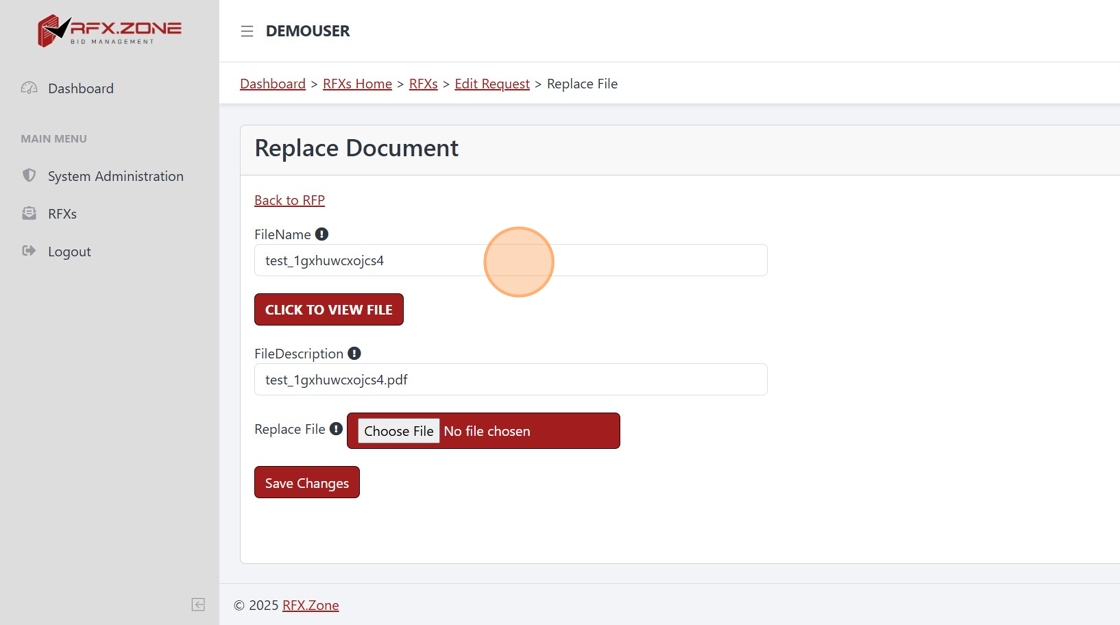 2. Click "Replace" to update a proposal file. This button is only available before the vendor submission period begins.